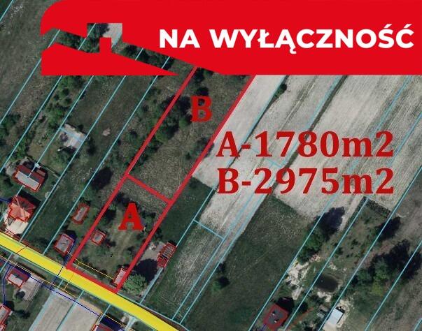 UWAGA: WSZYTSKIE DANE W OGŁOSZENIU DOTYCZA DZIAŁKI B (PATRZ ZDJECIA W GALERII) MOŻLIWOŚĆ ZAKUPU CAŁOŚCI Powierzchnia ...
